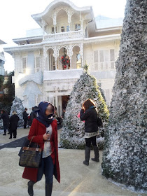 cevresındekı tum çam agaclarının ustunu karla kaplıydı..( o kadar guzel yapmıslar kı kar gercek gıbı kartopu oynayasın gelıyor)